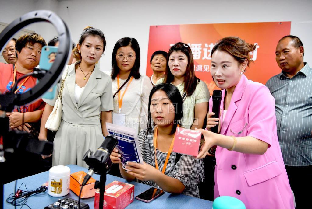 2023年9月5日,在安徽省亳州市谯城区博景职业培训学校举办的“农村电商人才培训班”上,一名老师在向参加培训的人员进行农产品电商销售技能培训。