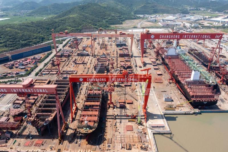 9月9日,在浙江舟山长宏国际船舶修造有限公司,工人开足马力赶制船舶订单。 当前,该公司手持订单48艘,订单排至2027年。2023年上半年,该公司营收突破24.4亿元,同比增长70.6%。 据了解,2023年上半年,浙江舟山船舶工业总产值和新承接同比增长47.2%和55.5%,占全省比重65.7%和72.4%,手持订单创5年来新高。