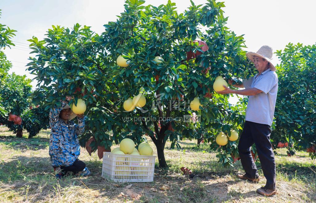 2023年9月19日,在江西省吉安市万安县高陂镇泗源村富晶果业基地,果农正在采摘井冈蜜柚。