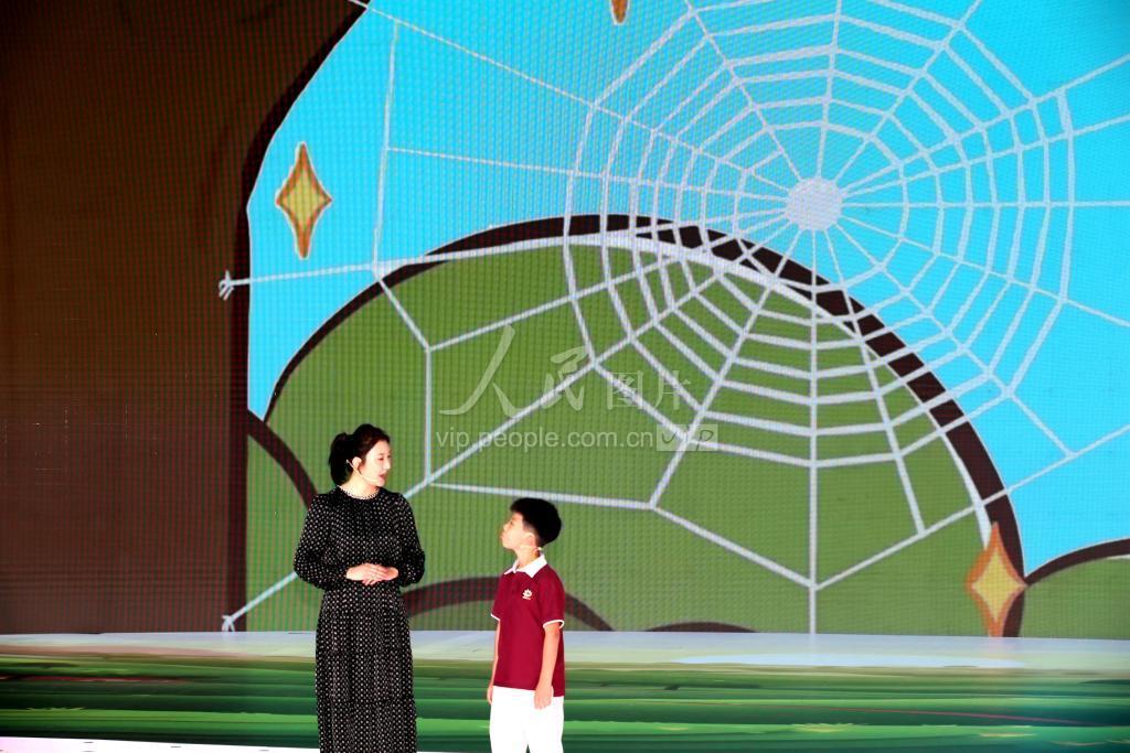 9月19日,在北京首钢园,“我和妈妈学科学”活动获奖者郭艳、周泉母子在跟大家分享《蜘蛛结网的大智慧》的故事。