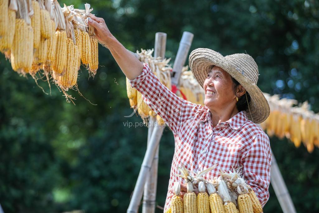 2023年9月19日,安徽省黄山市呈坎古村村民将收获的玉米、黄豆、稻谷、南瓜和红辣椒等农作物进行晾晒,在古村晒场上描绘出一幅丰收图景。