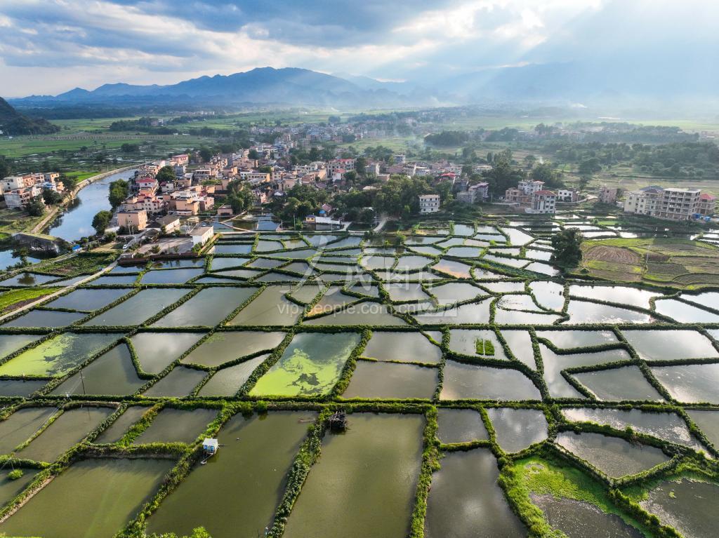 2023年9月20日,湖南省永州市道县清塘镇陈熊村,阡陌纵横的鱼塘在霞光的映照下,勾勒出一幅美丽的生态画卷。 近年来,清塘镇按照道县“兴产业、美乡村、育乡风、强治理、富民众”要求,实施产业兴旺工程,形成了绿色有机蔬菜、生态循环种养、水果种植、稻田养鱼及鱼苗孵化等特色产业,成为当地特色水产养殖镇。