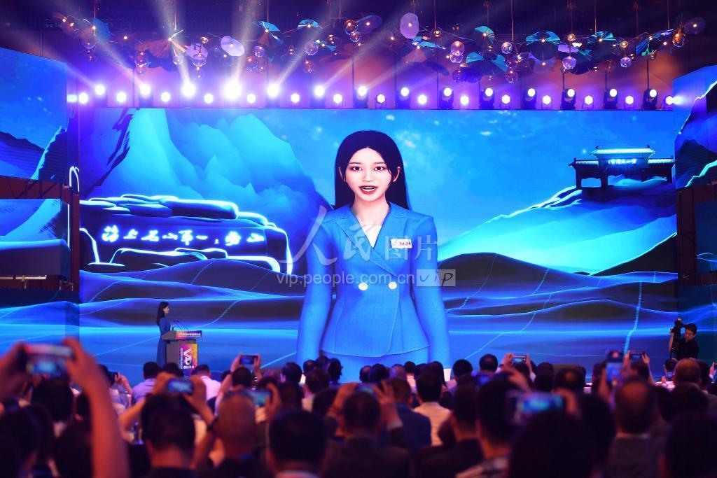 9月22日,在山东省青岛市崂山区举办的2023国际虚拟现实创新大会开幕式上,现实和虚拟主持人的双向互动成为会场亮点。