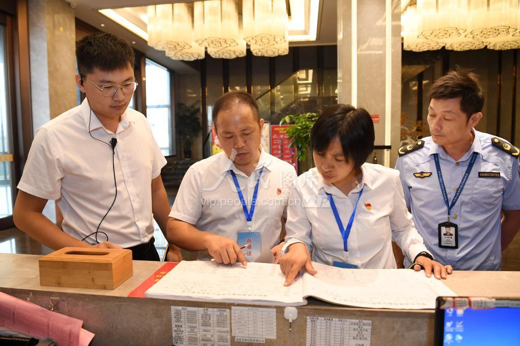 2023年9月25日,江西省樟树市纪检监察干部和市场监管部门工作人员在城区一家酒店摸排是否存在公款违规吃喝等情况。