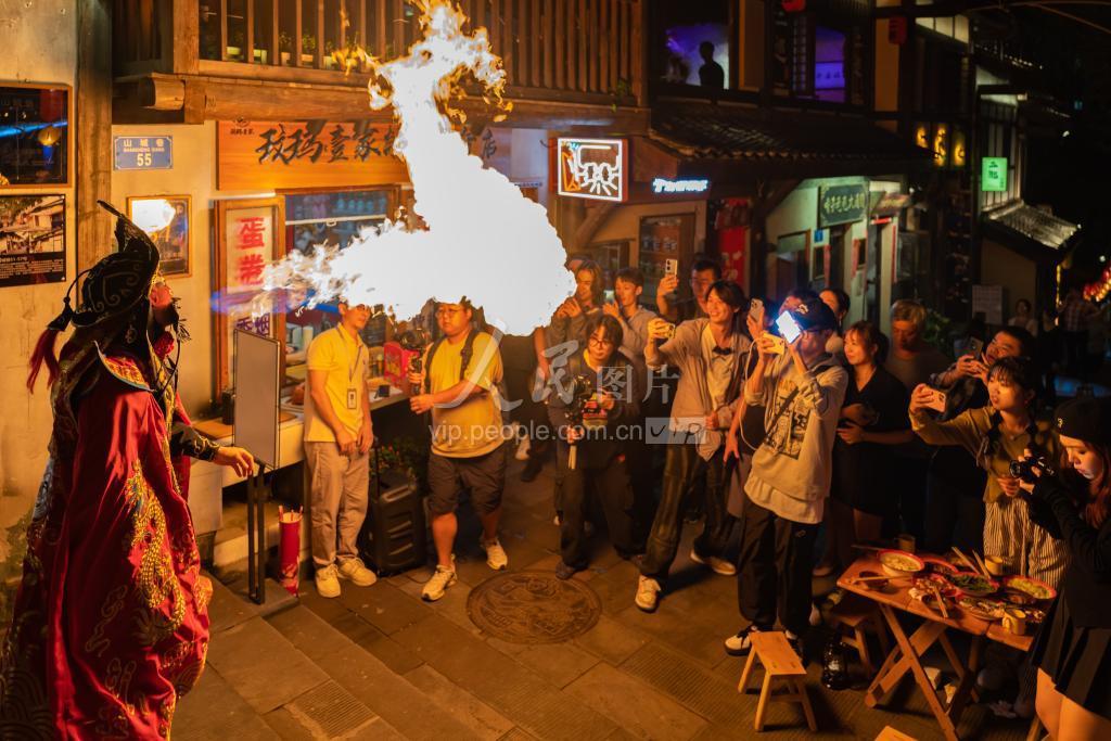 2023年9月26日,重庆市山城巷传统风貌区,后街天灯街正式开街。景区通过举办坝坝席、趣味灯谜、变脸喷火表演、点天灯等系列活动,让游客感受到街巷边原汁原味的老重庆风土人情与文化历史,共同迎接中秋国庆的到来。