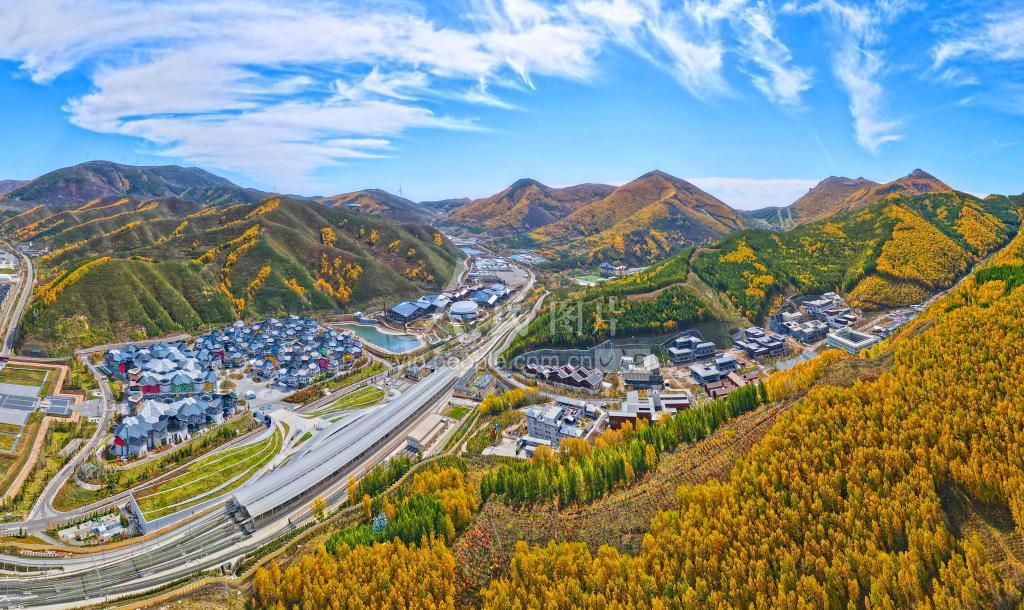 2023年9月28日,河北张家口太子城小镇色彩斑斓,层林尽染,呈现出一幅动人的秋日画卷。