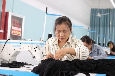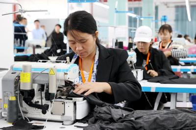 2023年10月16日,在贵州省黔西市(县级市)杜鹃街道“多彩贵州苗绣产业园”服装生产车间,工人们正熟练地进行裁剪、缝制、包装等工作,现场一派繁忙的生产景象。 目前,该产业园入驻10家服装产业链企业,于2023年7月投产运营。企业入驻开工以来,就近吸纳700余人就业,企业生产订单量可达 3.5 万件/天。