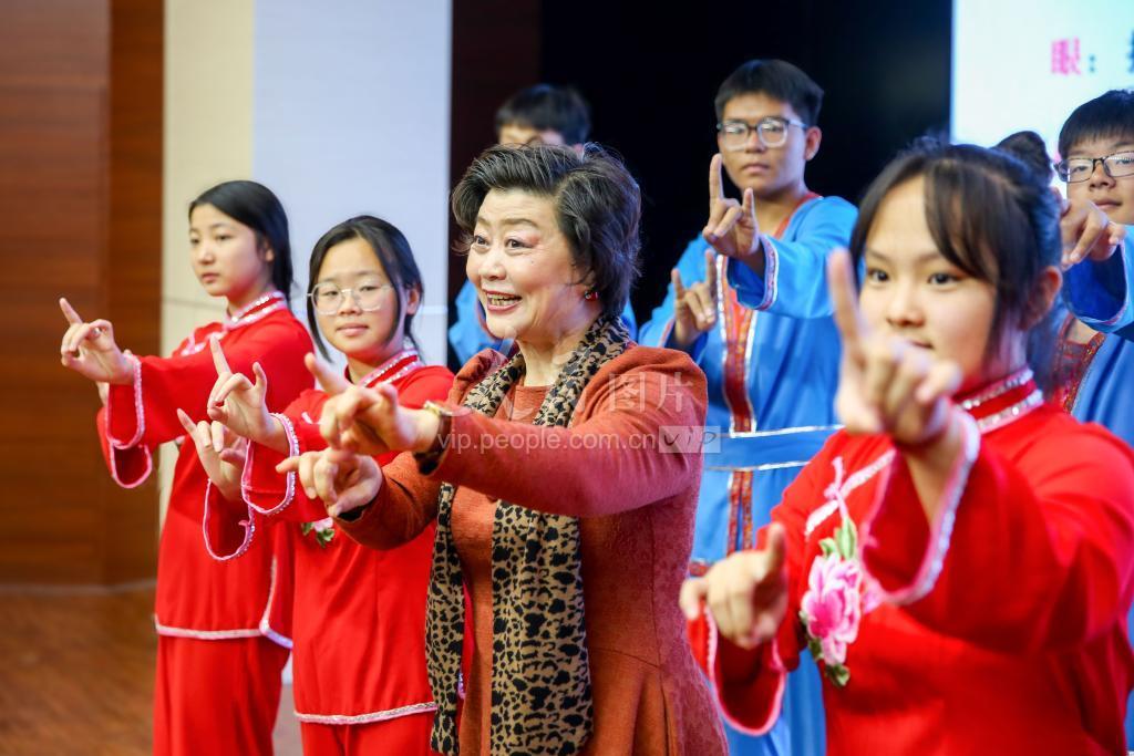 2023年10月18日,在山东水利技师学院,山东省淄博市国家级非物质文化遗产五音戏传承人刘爱琴正在指导学生练习戏曲表演基本功。