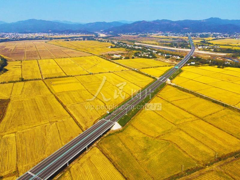 2023年10月24日,在安徽省安庆市潜山市源潭镇永济村一带,金色的田野与建成即将通车的无(为)岳(西)高速路面六标段交相辉映,绘就一幅新时代乡村绚丽画卷。 近年来,当地不断加大交通基础设施建设力度,方便群众出行,为推进产业发展夯实坚定的基础,助力乡村振兴。