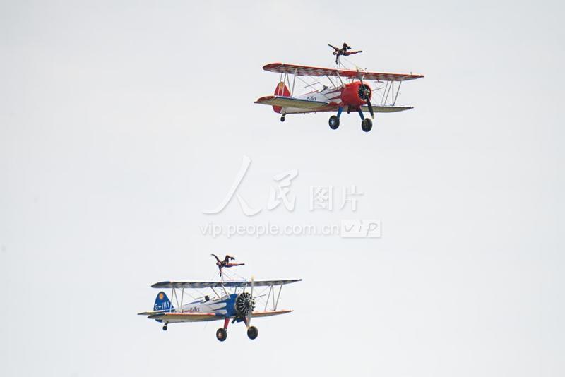 2023年10月27日,在江西南昌瑶湖机场来自英国御风机翼行走特技飞行表演队特技飞行表演。