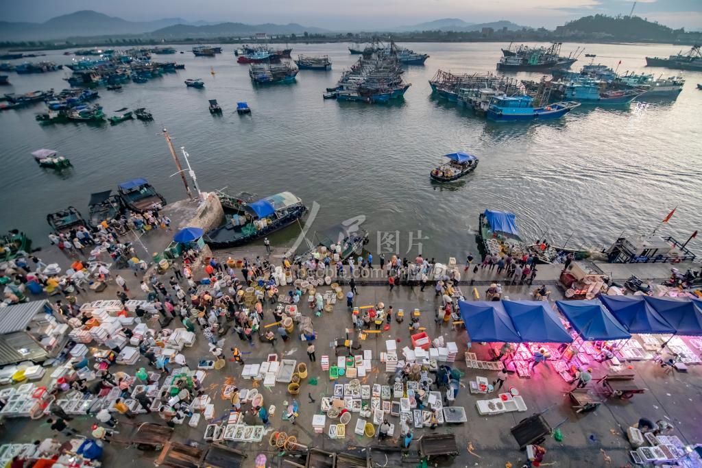 2023年11月6日,广东省茂名市博贺渔港码头人来船往,热闹非凡,来自广东各地批发商、游客和当地市民驱车到渔港游览、买海鲜,购销两旺,一派繁忙景象。