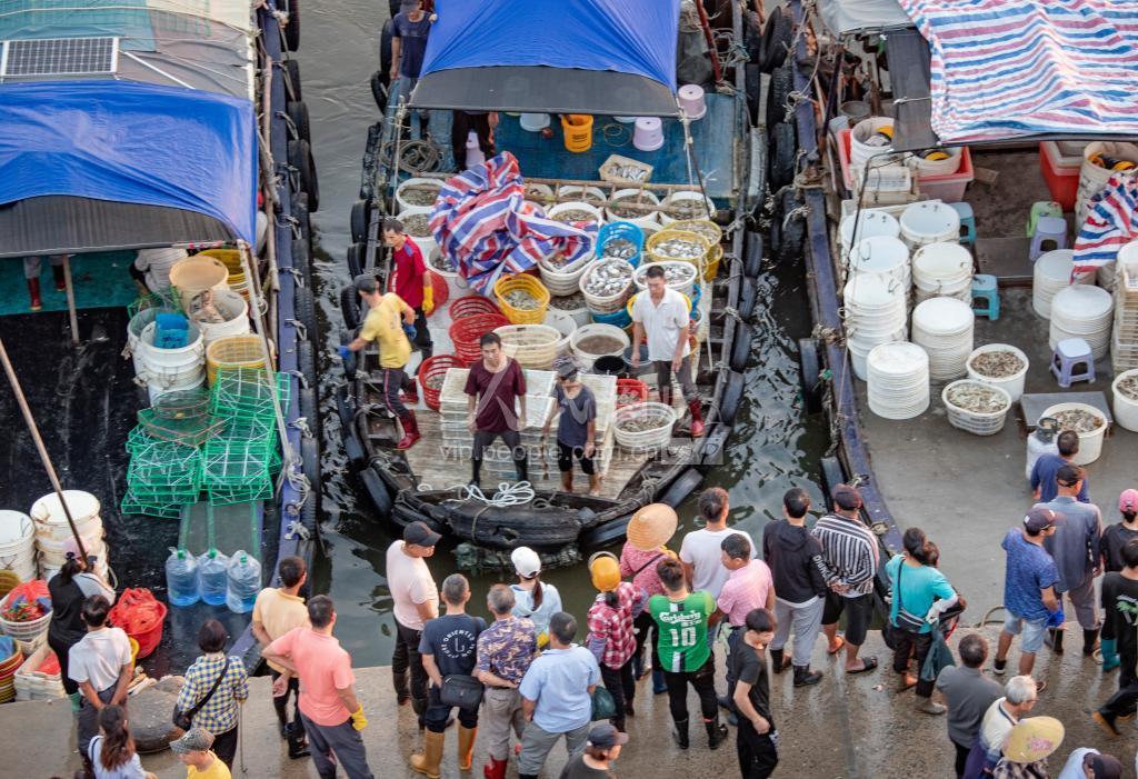 2023年11月6日,广东省茂名市博贺渔港码头人来船往,热闹非凡,来自广东各地批发商、游客和当地市民驱车到渔港游览、买海鲜,购销两旺,一派繁忙景象。.