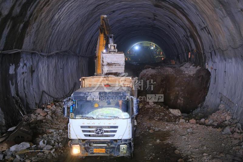 2023年11月12日,杭绍台线玉环市温玉铁路彭宅隧道工程,铁路建设者加紧施工。