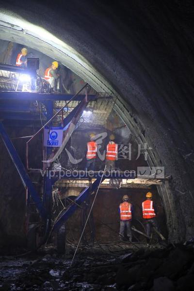 2023年11月12日,杭绍台线玉环市温玉铁路彭宅隧道工程,铁路建设者加紧施工。
