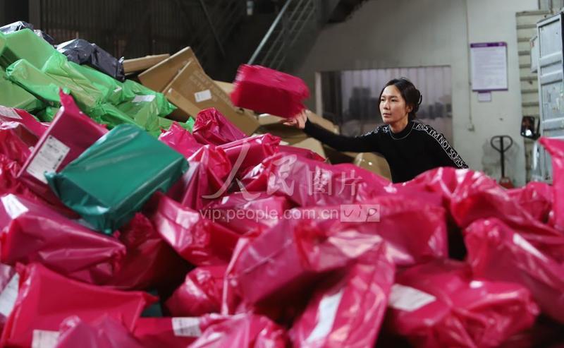 2023年11月13日,在浙江省台州市路桥区螺洋街道一家快递网点,工作人员忙着分拣投运。“双11”过后,快递迎来一次寄递高峰,在台州市路桥区,各家寄递网点加班加点,确保第一时间完成分拣、寄送。