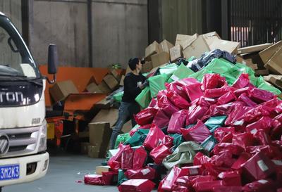 2023年11月13日,在浙江省台州市路桥区螺洋街道一家快递网点,工作人员忙着分拣投运。“双11”过后,快递迎来一次寄递高峰,在台州市路桥区,各家寄递网点加班加点,确保第一时间完成分拣、寄送。