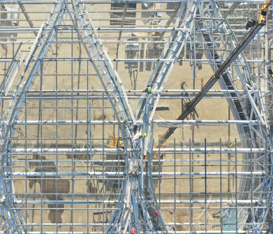 2023年11月21日,安徽省合肥市,新合肥西站的建设者正在加紧进行站房屋顶结构作业,确保项目早日建成。