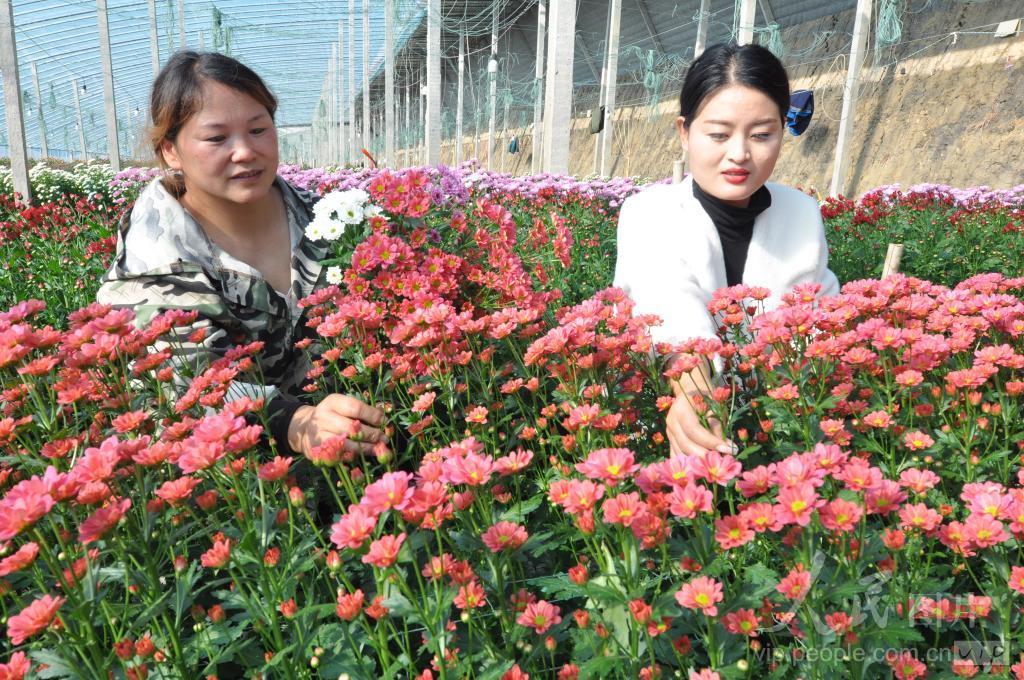 2023年11月21日,江苏省连云港市东海县双店镇三铺村花农正在采收彩球小菊花。