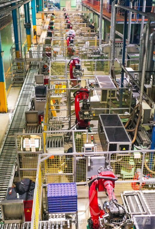 2023年11月21日,山东省乐陵市经济开发区一家汽车零部件生产企业,智能机器人在生产线上赶制刹车片出口订单。