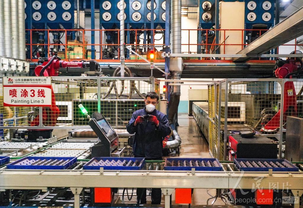 2023年11月21日,山东省乐陵市经济开发区一家汽车零部件生产企业,工人在生产线上赶制刹车片出口订单。