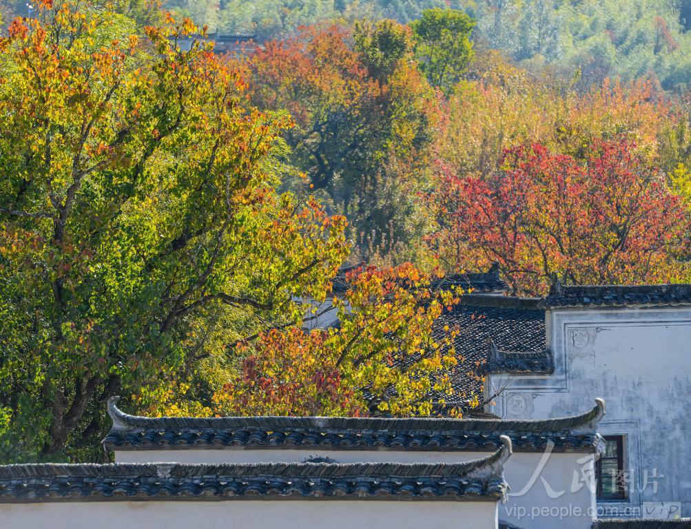 2023年11月20日,安徽省黟县塔川村五彩斑斓、层林尽染、美不胜收。