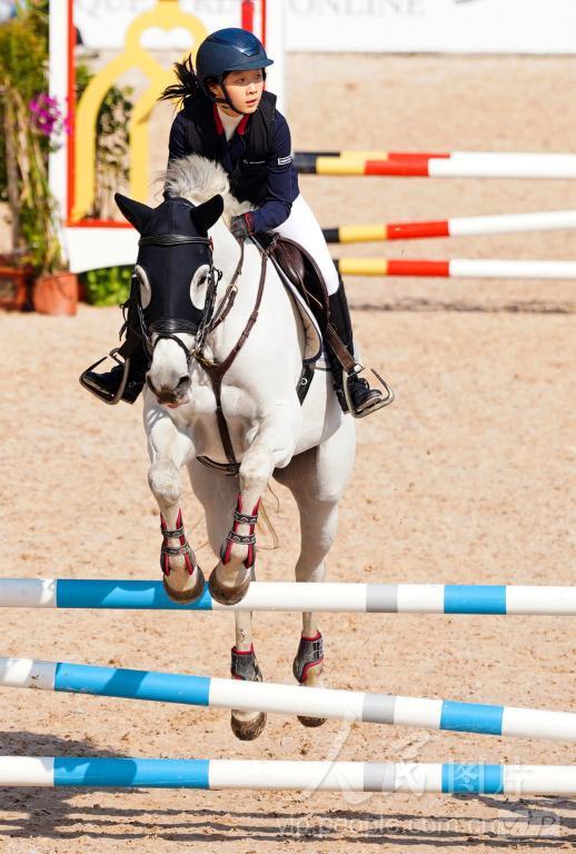 2023年11月25日,在浙江省金华市金东区岭下镇举行的2023年浙江省青少年马术锦标赛赛场上,骑手与马配合默契,悬空一跃而过。