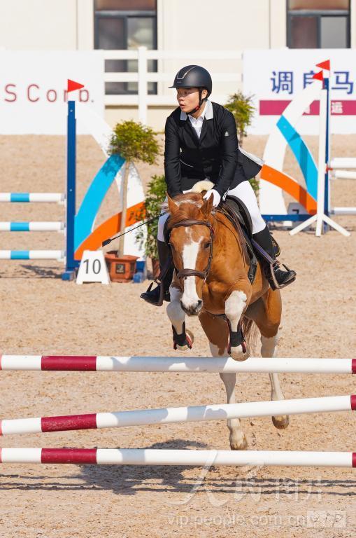 2023年11月25日,在浙江省金华市金东区岭下镇举行的2023年浙江省青少年马术锦标赛赛场上,骑手与马配合默契,悬空一跃而过。