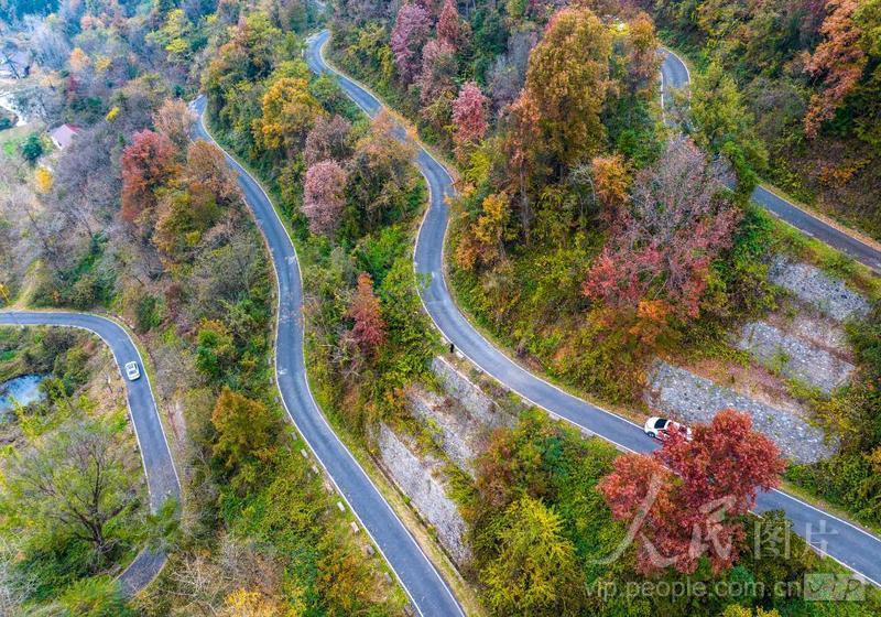 初冬时节,湖北省安陆市王义贞镇钱冲村一带的盘山公路,在五彩植被的衬托下,色彩斑斓,层林尽染,一时间成为游客驾车赏景的靓丽的风景线。 近年来,湖北省安陆市按照“四好农村路”建设标准,加快乡村路网建设,大力实施黑化、硬化与美化,将农村公路建设与乡村旅游以及产业发展相结合,在促进山中农副产品外销的同时带动乡村旅游发展,让农村公路真正成为山区人民的致富路幸福路,村民获得感不断提升。