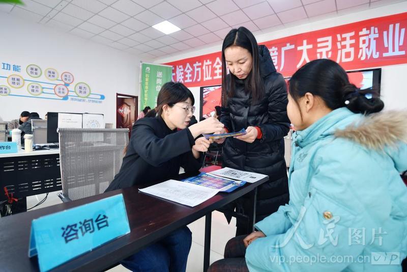 2023年12月1日,在河北省石家庄市井陉矿区零工市场,灵活就业人员进行就业信息咨询。