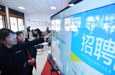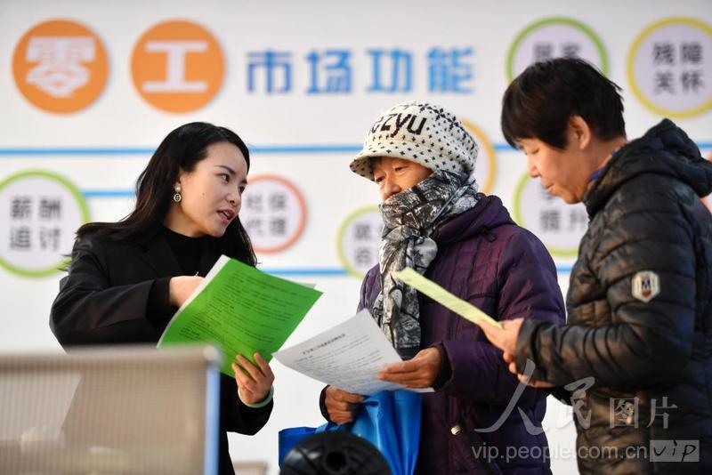 2023年12月1日,在河北省石家庄市井陉矿区零工市场,工作人员为就业人员提供招聘信息。