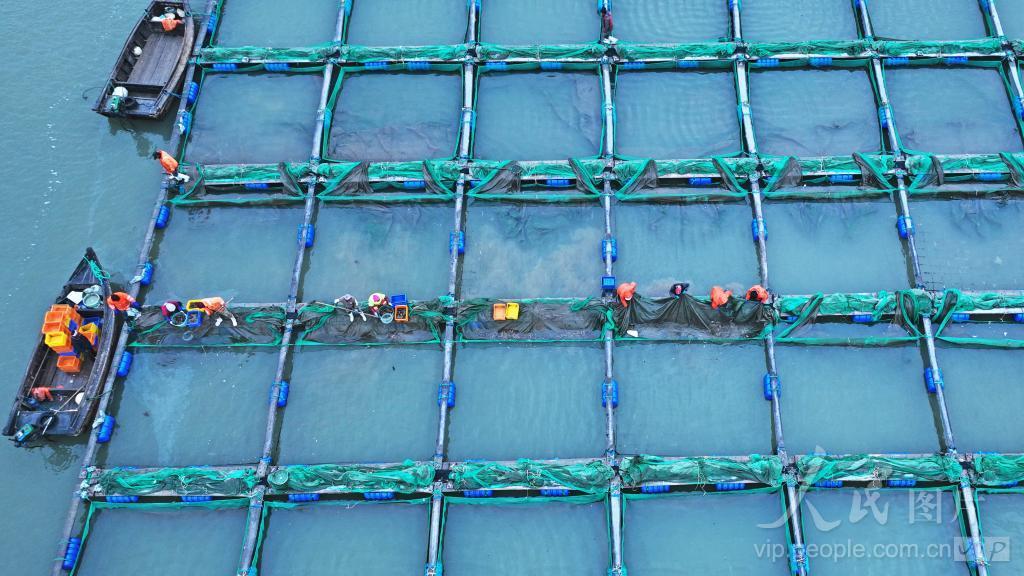 2023年12月13日,在山东省荣成市桑沟湾海洋牧场筏式养殖区,捕捞海参的养殖船来往穿梭,养殖工人忙着收获海参投放市场。 山东省荣成市是“全国海参养殖加工标准化示范区”,有潮间带、池塘、底播3种养殖方式,荣成海参是全国农产品地理标志产品。
