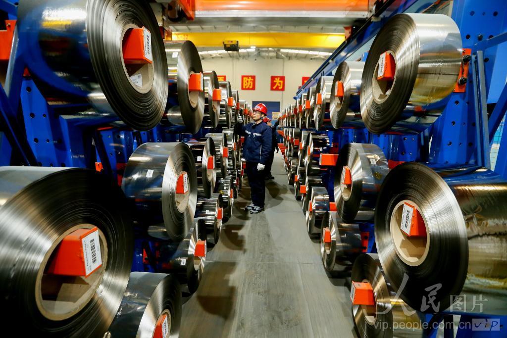 2023年12月14日,位于山东省青岛即墨区的青岛云路先进材料技术股份有限公司的工人在生产出口到海外市场的非晶带材产品。