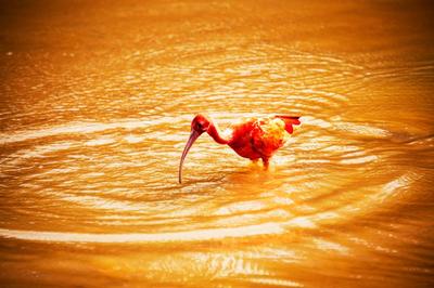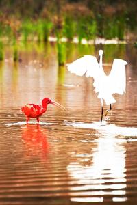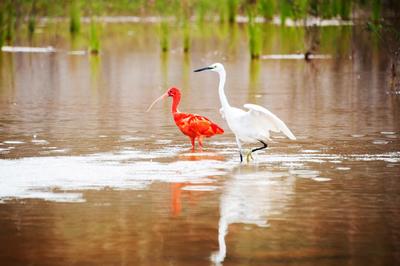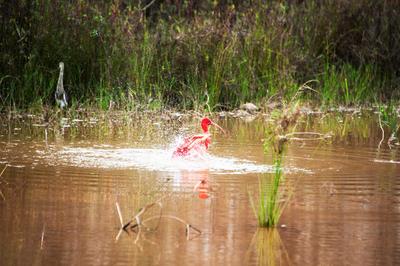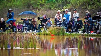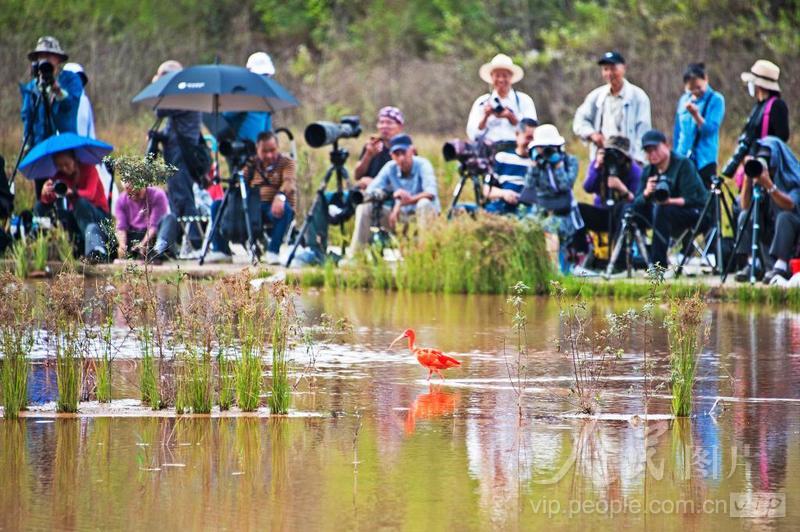 近日,一只美洲红鹮在广西南宁市良庆大桥南岸附近湿地栖息,吸引众多鸟类摄影爱好者前来观赏拍摄。 美洲红鹮生长在美洲热带地区,2012年被列入《世界自然保护联盟》濒危物种红色名录,在我国属于国家二级保护动物。美洲红鹮浑身羽毛颜色似火焰,被誉为“世界上颜色最红”的鸟类,备受人们喜爱。 近几年,广西南宁市持续加强生态环境的综合整治,河流、湿地水质不断提升,水生动植物丰富,引来不少鸟类栖息。