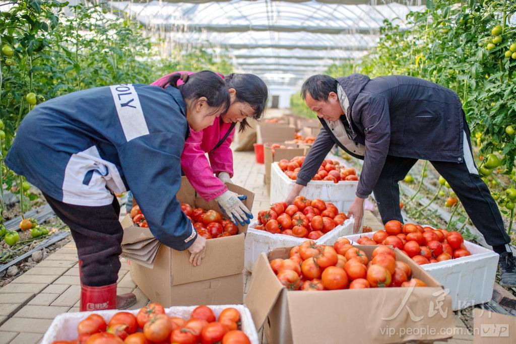 2023年12月25日,江西省抚州市金溪县秀谷镇丰收港设施果蔬基地,采摘工人在分拣刚刚采摘的西红柿,准备直供粤港澳大湾区。