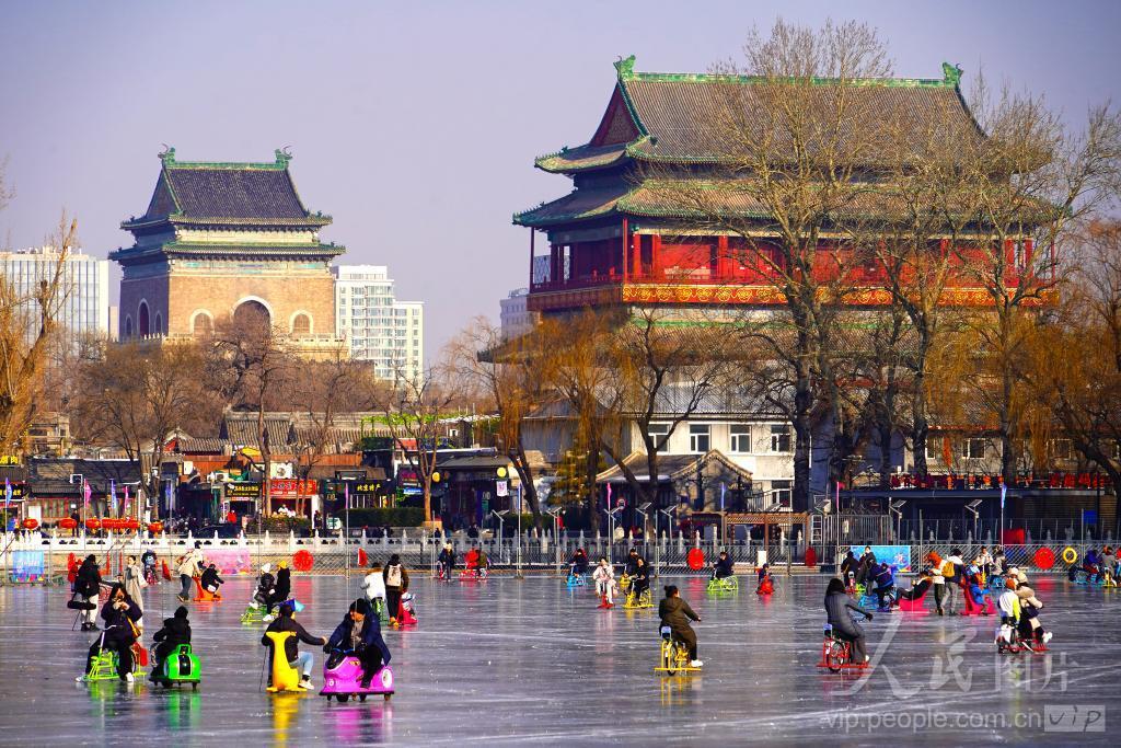 2023年12月28日,北京,北海公园冰场与什刹海冰场开放,吸引不少市民前去滑冰。北京市属公园冰雪游园会于28日开幕。游园会共开放5家市属公园的8处冰雪运动场地,包括5处自然冰场、3处人工雪场,整体分为北京传统冰上运动、新型雪地运动、特色文化展览、冰雪文创体验等四大主题活动区。