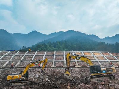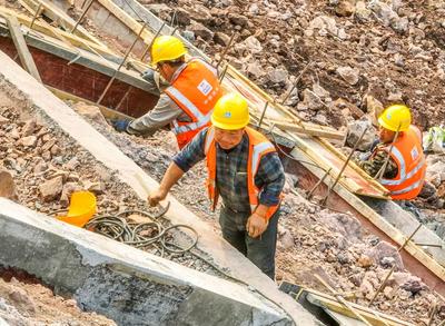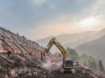 2023年12月31日,湖南永州市零道(零陵至道县)高速建设项目工地,工人在施工。当日是元旦假期第二天。在零道 (零陵至道县) 高速公路建设项目施工现场,建设者们坚守岗位,确保工程进展顺利。