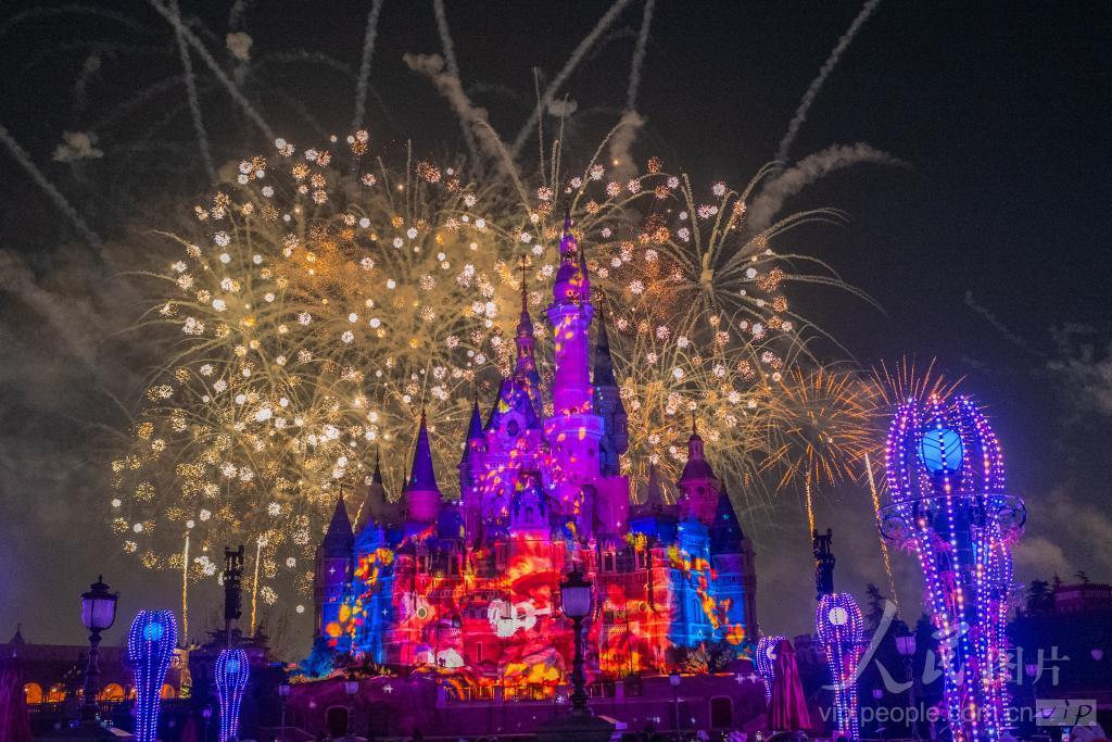 上海迪士尼“点亮新一年”特别夜间演出上演 烟花璀璨美不胜收