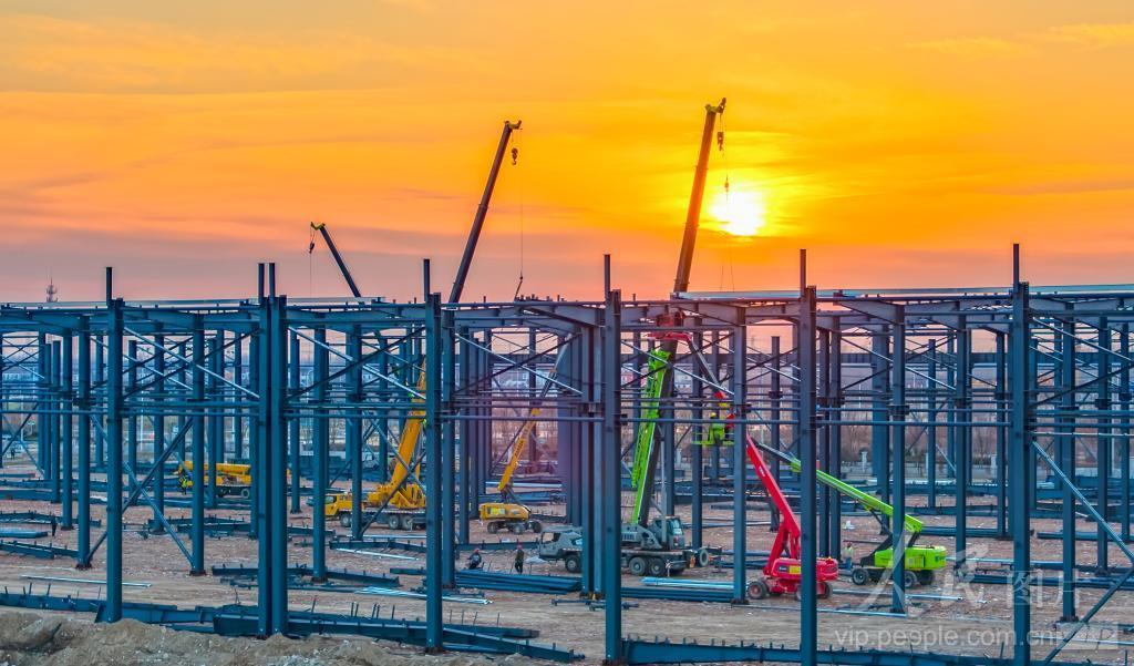 上传时间: 2024-01-08 11:20:42 图片说明: 2024年1月7日,江苏省宿迁市苏宿工业园区一项目施工现场,工人们正在建设厂房。
