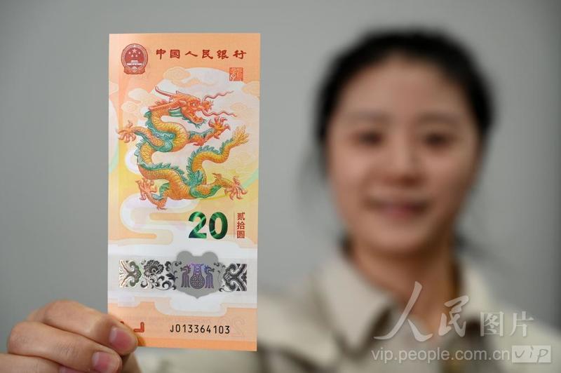 2024年1月9日,由由中国人民银行发行的2024年贺岁纪念钞和双色铜合金纪念币开始兑换。其中贺岁纪念钞面额20元,发行数量1亿枚。贺岁双色铜合金纪念币面额10元,发行数量1.2亿枚。纪念钞和双色铜合金纪念币与现行流通人民币职能相同,与同面额人民币等值流通。 2024年贺岁纪念钞正面主景为龙的造型图案,上方为中华人民共和国国徽、“中国人民银行”、篆书“龙”字印章,下方依次为光彩光变面额数字“20”与汉字“贰拾圆”、动感全息图案、透明视窗、盲文面额标记和冠字号码。背面主景为儿童舞龙灯图案,辅以北京四合院民居装饰图案,上方为面额数字“20”、汉语拼音字母“YUAN”,下方为花卉与动感全息图案、年号“2024年”、行长章、面额数字“20”、“中国人民银行”汉语拼音和蒙、藏、维、壮四种民族文字的“中国人民银行 贰拾圆”字样。 2024年贺岁双色铜合金纪念币正面图案为“中国人民银行”“10元”字样,汉语拼音字母“SHIYUAN”及年号“2024”,底纹衬以团花图案。背面图案为中国传统剪纸艺术与装饰年画元素相结合的龙形象,衬以花灯和灵芝,币面左侧刊“甲辰”字样。