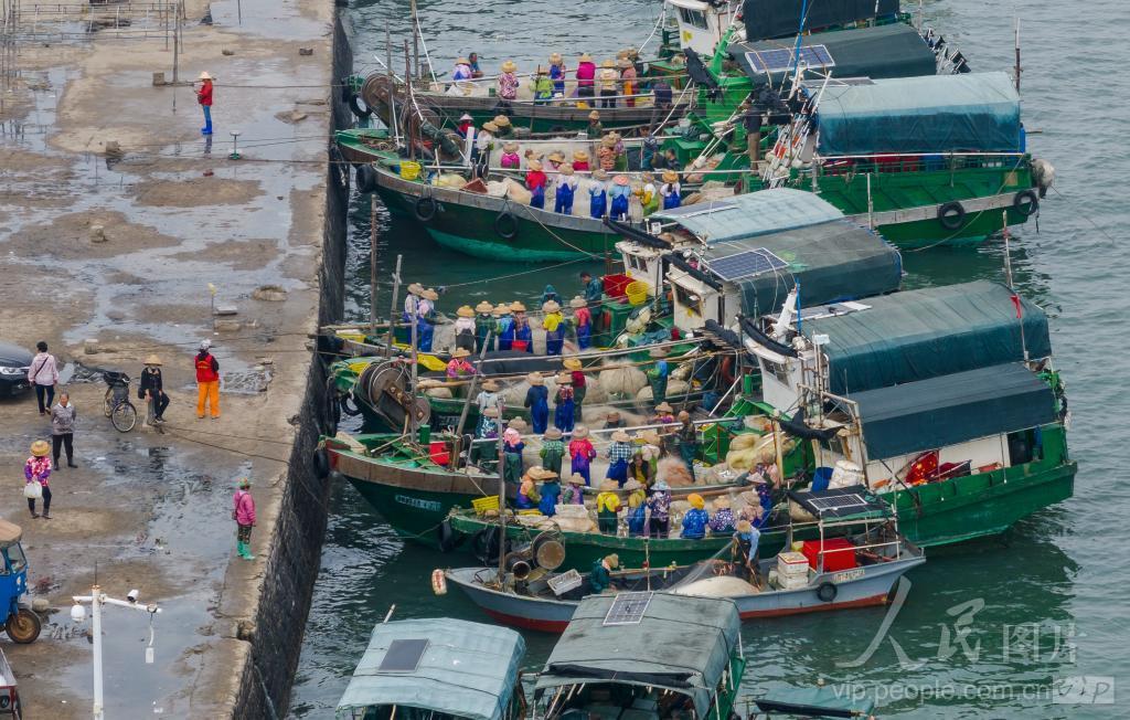 2024年1月8日,广东省湛江市徐闻县雷州半岛外罗港码头,出海捕捞归来的渔船停靠码头,岸边妇女登船拆网取鱼,船主将鱼获运到岸上销售,一片繁忙景象。 徐闻外罗港,位于县城东部,离城53公里。该港不仅以渔产品的品质高档、种类繁多闻名于省内,港澳台,甚至全世界众口称道。