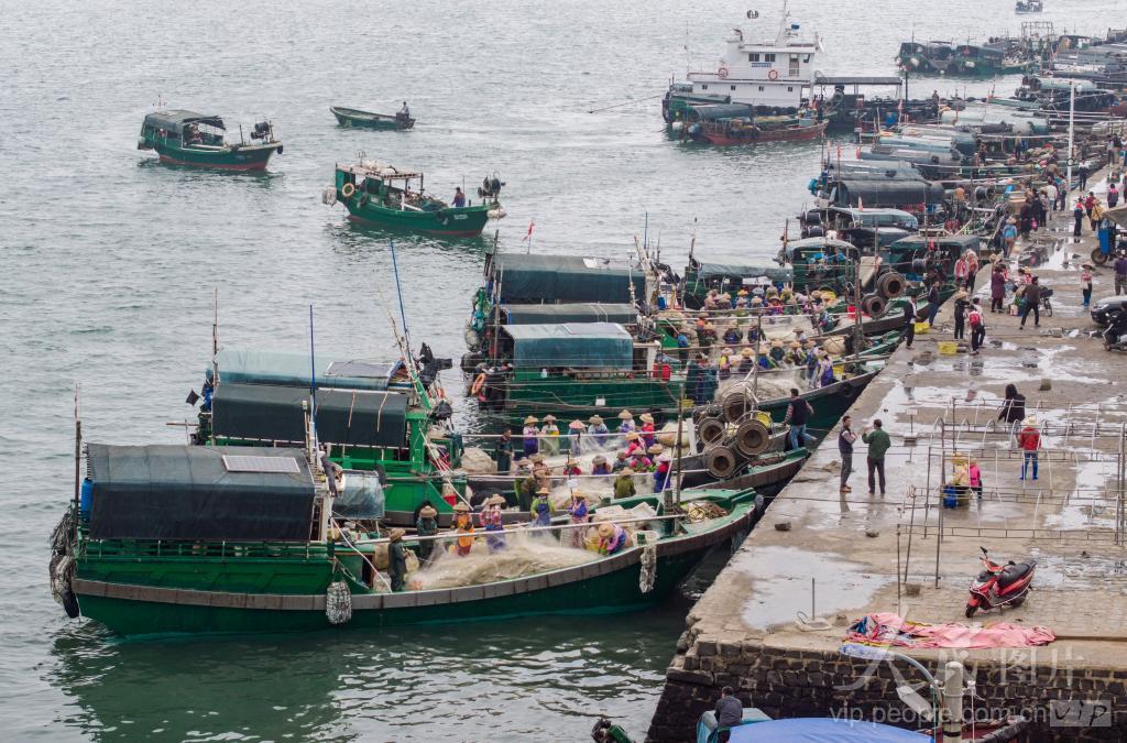 2024年1月8日,广东省湛江市徐闻县雷州半岛外罗港码头,出海捕捞归来的渔船停靠码头,岸边妇女登船拆网取鱼,船主将鱼获运到岸上销售,一片繁忙景象。 徐闻外罗港,位于县城东部,离城53公里。该港不仅以渔产品的品质高档、种类繁多闻名于省内,港澳台,甚至全世界众口称道。