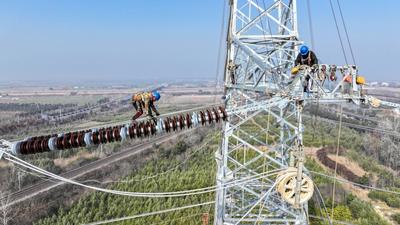 2024年1月13日,在盱眙—秋藤500千伏输电线路工程现场,江苏省送变电有限公司施工人员正在跨越京沪铁路架设导线,稳步推进工程进度。 据悉,该工程起自盱眙1000千伏变电站,止于秋藤500千伏变电站,新建线路长约205公里。工程建成后将进一步加强南京500千伏电网网架结构,提高南京市电网受电能力,满足地方经济发展需求,对服务长三角一体化发展具有重要意义。