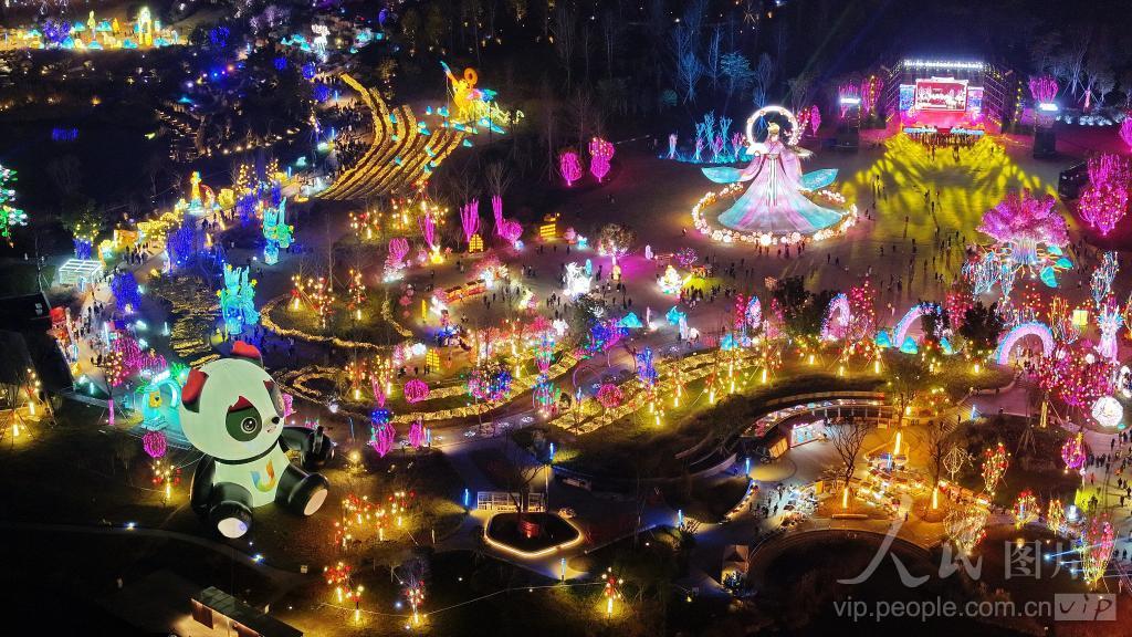 2024年2月7日晚,2024中国·成都东安湖国际旅游度假区首届灯会游人如织。