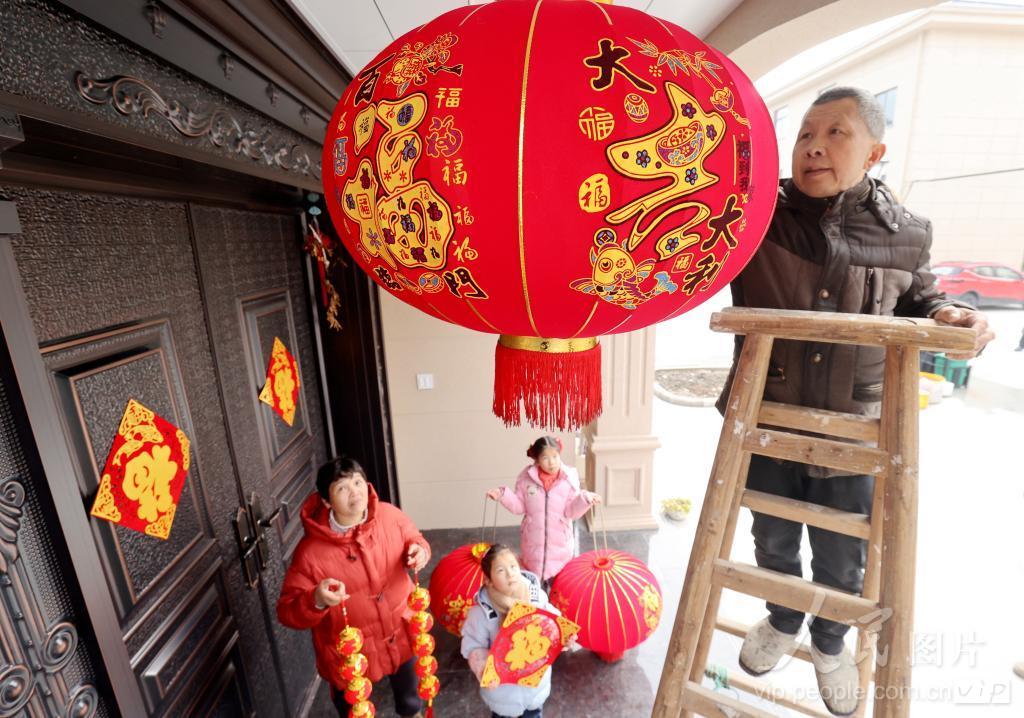 2024年2月8日,在浙江省湖州市德清县新安镇农村安置小区舍东新村,新搬迁入住的村民们挂灯笼、贴窗花、贴对联、包饺子,喜迁新居过春节。近年来,新安镇舍东村通过异地搬迁安置改造等项目,建设安置房123幢,帮助81户改善住房条件,群众的幸福感、获得感显著增强。