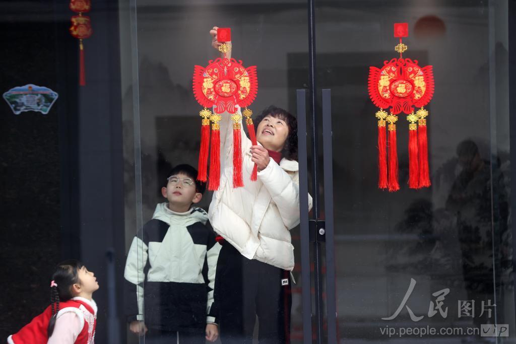 2024年2月8日,在浙江省湖州市德清县新安镇农村安置小区舍东新村,新搬迁入住的村民们挂灯笼、贴窗花、贴对联、包饺子,喜迁新居过春节。近年来,新安镇舍东村通过异地搬迁安置改造等项目,建设安置房123幢,帮助81户改善住房条件,群众的幸福感、获得感显著增强。