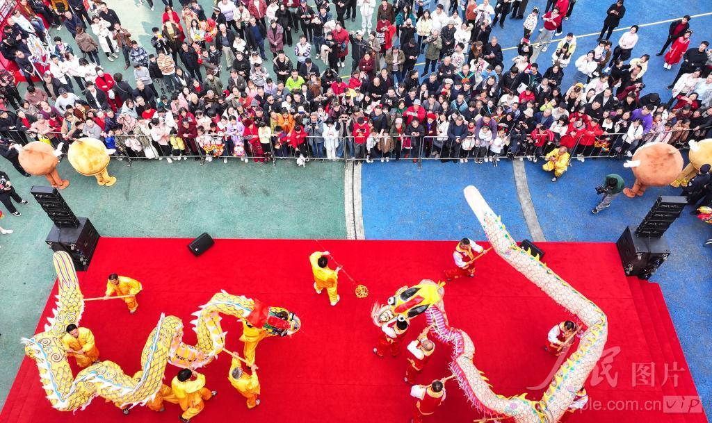 2024年2月12日,四川省泸州市江阳区华阳街道,市民群众在观看舞龙表演。