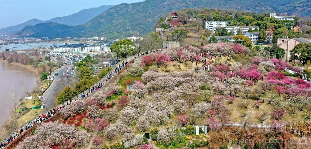 2024年2月13日,浙江省临海市,台州府城梅花盛开,吸引游客纷至沓来。