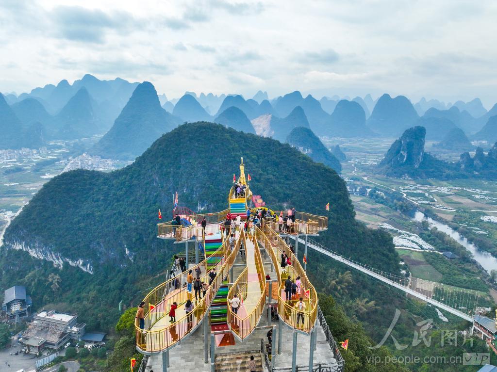 2024年2月13日,广西荔浦,游客在荔江湾景区游玩,乐享山水风光,欢度春节假期。