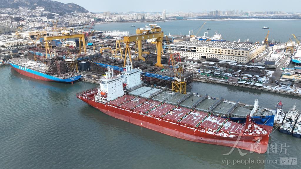 2024年2月23日,在山东省荣成市石岛管理区黄海造船有限公司船坞内各类大型船舶抓紧建造中。