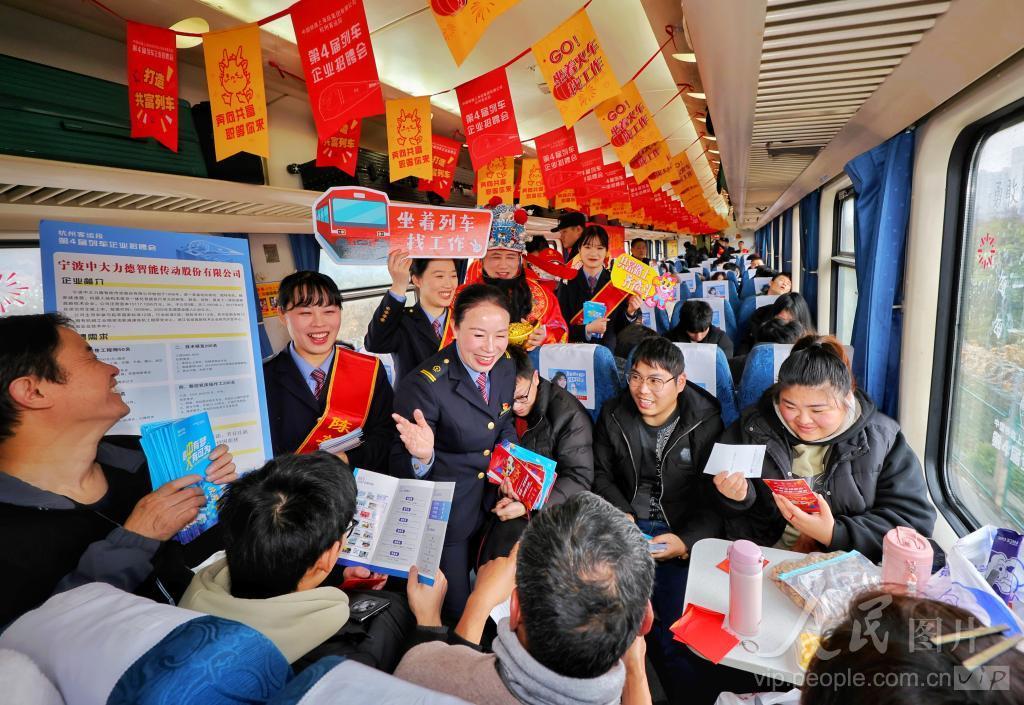 2024年2月26日,广州开往宁波的K210次列车上,杭州客运段邀请浙江省部分企业在列车上进行现场招聘,有效推动企业复工复产实现首季开门红。 中国铁路上海局集团公司杭州客运段至今已经连续四年举办列车企业招聘会,通过列车这个平台为企业打造招工的渠道,为旅客提供求职的机会,让有需求的旅客坐着火车找工作,打造实实在在的“共富列车”,让列车成为企业和职工的桥梁纽带。